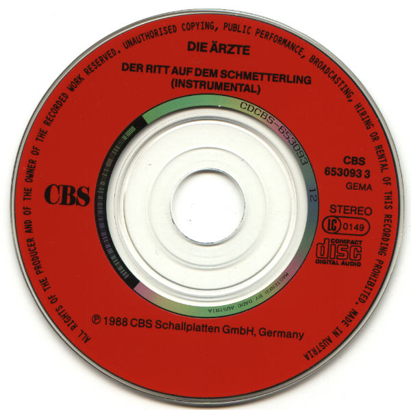 | 1988 | Der Ritt auf dem Schmetterling | 3" SCD | CBS | 653 093 3 |